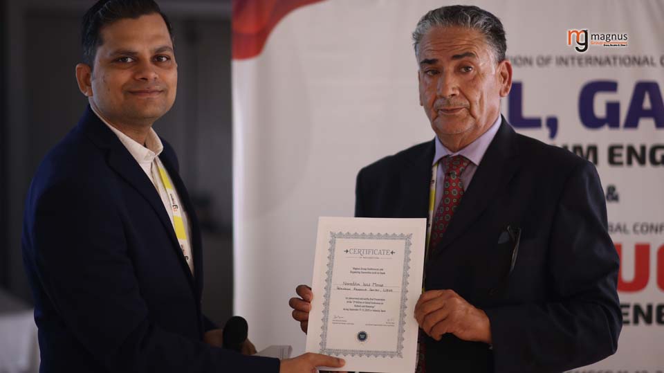Neeraj Singh Felicitating Noreddin Issa Mousa With His Oral Presentation Certificate
