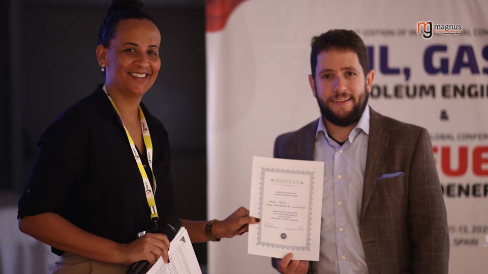 Neeraj Singh Felicitating Mehrez Karima With Her Oral Presentation Certificate